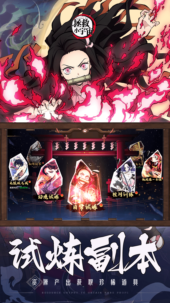 考验阵容战力的柱间训练,体现单英雄战力的鬼之屋融合rouguelike特点的无限城,在趣味挑战中获得丰厚的珍惜道具资源。